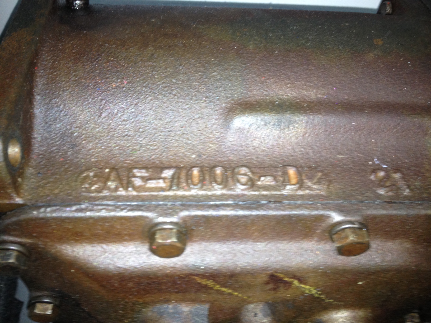 Hi guys. I'm having a hard time finding the transmission I need for my truck. I can't find one anywhere that matches the one that came in the truck that is junk. My truck is a 1960 f100 long bed but from what I have found so far someone has replaced the drive train with a 272 y block from what I believe is a car. I'm going to add the pics of all the details. I hope someone on here knows what it is from or if they have one that would be awsome. The first number is on the top of the transmission housing above the side loader cover it Is af-7006-d 22 the second number is under the side cover on the housing it is 9m28 the side loader cover where the shift forks are is 9 bolt. it is a large diameter input shaft the housing where the input shaft goes threw has a number taaa7050b the part where the throw out bearing rides is 3 1/4 inch long as show in the picture. The input shaft housing end is a 1 3/4 diameter as in the pictures all the other numbers are in the pictures. Any questions please ask I need help. I'm doings a cruze for prostate cancer for my dad at the end of the month and I'm out with out the trans for my truck thanks a lot guys