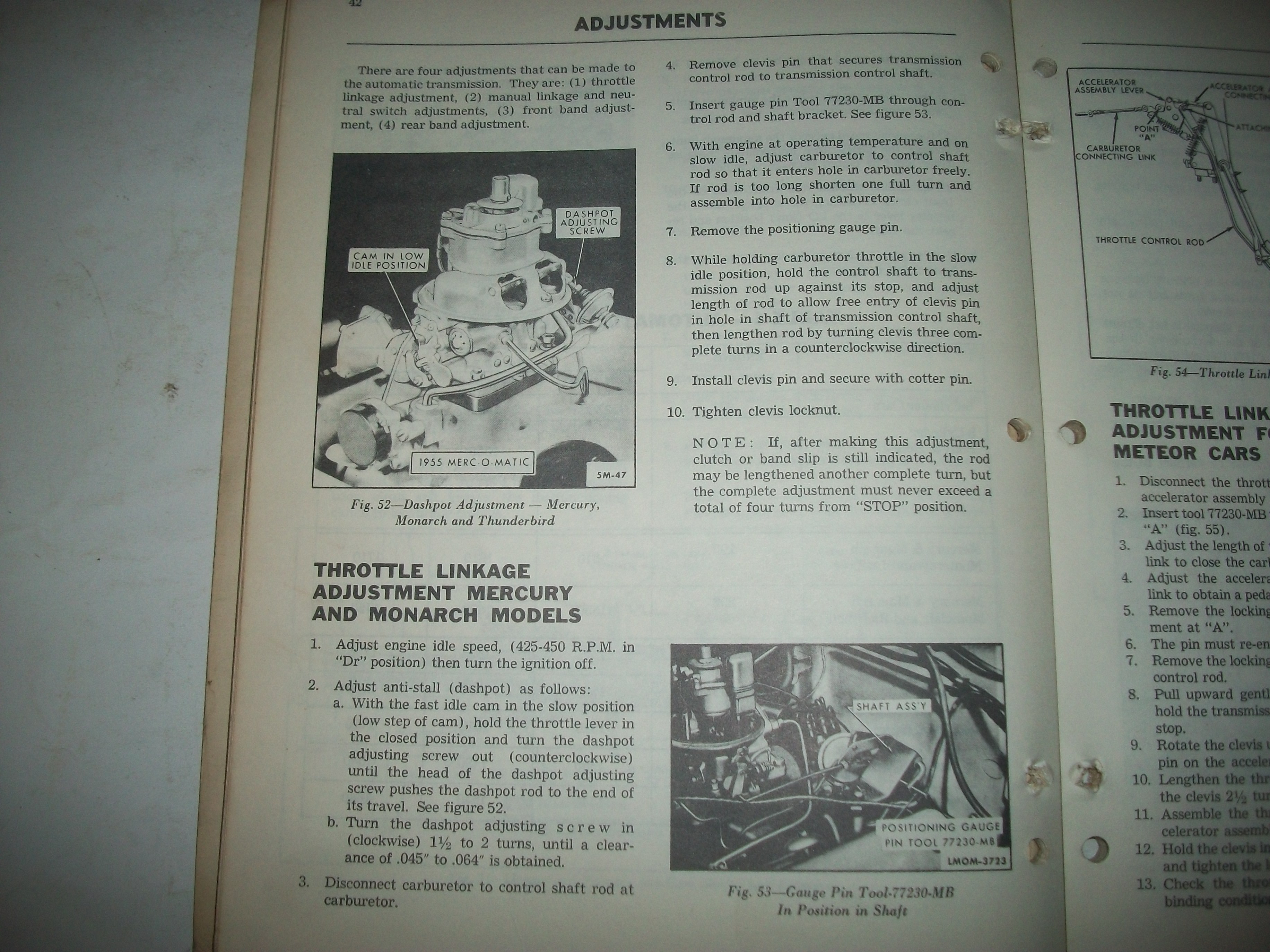 the throtle presure is the key to transmition not failing.if the rod is to short trans presure is low,and early shifts can and will cause clutch sliping and early failure. ther is more to proper adjustement than rod lenkth. the foot feed has to be corect,the linkage on the intake must be free to over centre and alow proper down shidt and trans presures. so again get the proper info and follow the steps,you will be hapey and the trans will work well(unless it is alreadey fried).have worked on a number with fried clutches and most alwayes way out of ajustement