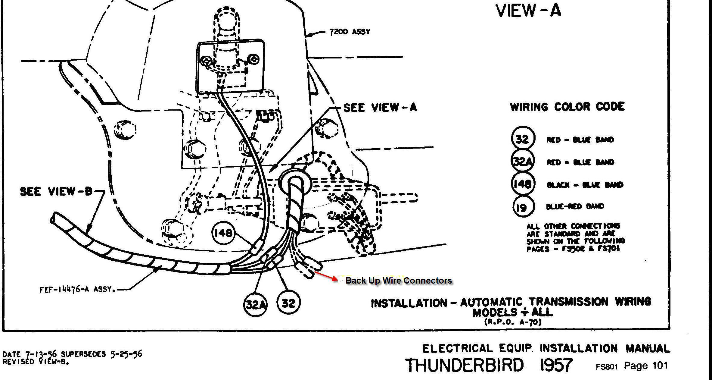 Mine is a 56 with the back up assembly above the tail light but the wiring is the same.