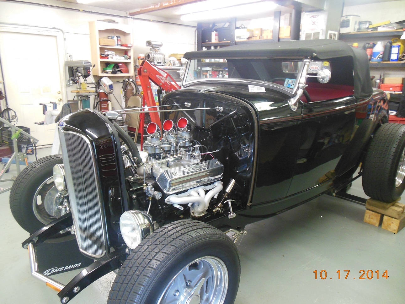 Finally finished my Yblock install in my 32 Ford.. Took longer than I had planed .Had to fab a lot of items..Still have some brackets to make , fine tune, cleanup some wiring and wire up the MSD 6A box.Run & sounds good. Had out for ride last night and got lotsof looks & comments on it being a Ford Y 312..Very pleased with outcome.. THANKS to ALL on this site for info and guidance..Regards Steve McD One picture attached and a closeup of engine already on this site on " Cams that fit 312" Stuff that Fits listing..