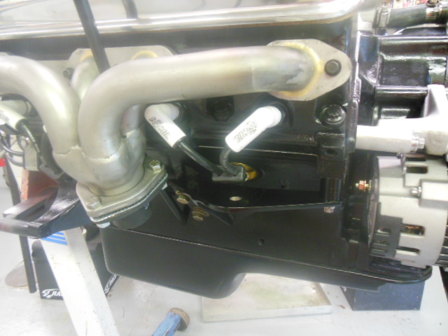 side view of cutout for tie-rod ... also in pic is how I finish headers I weld to flange from inside , then diegrind to match, then bolt to an old head.and fill outside seam with brass before coating or paint ... [ I think it makes them look better , just my opinion].. also in pic is the extended engine mount...I flat spotted the block and drilled 3/8 NC for 3rd bolt..i thought the two original bolts were too much of cantilevered ahead so headers would fit.. Regards Steve McD [thundercat]