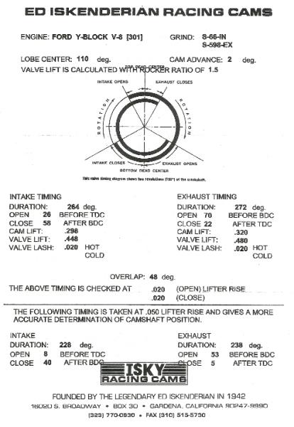Yes, I read the info on this intake and know it is a poor performer, I knew it when I bought it but it came with the carbs and was just under $200, so that is what I have. I am however on the look out for a better intake.  With all that said,    This is a cam that Ted recommends, you can see (if I loaded it correctly) that the Isky came opens the exhaust 10* sooner and the intake 4* sooner. This is my concern and I'm thinking about swapping it while the motor is still on the stand and I can roll it over.