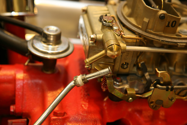 Right now the Banjo has a tube to accept a rubber hose. On my 4150 Carb, I had 90˚ brass elbow that comes out of the carb and then couples to my fuel line. The 90˚ elbow is kind of a chunky block and it is a bit too wide to clear the air cleaner. The reason being is the new 4160 carb fuel inlet area is wider than my 4150. An easy fix would be a rubber fuel hose, but I would like to keep it stock looking. A simple solution would be a fuel line that has a Banjo connection on one end and a threaded male coupling into the glass fuel bowl. I have looked on the internet but have not found anything like that. A tiny 90˚ elbow may also work. On another note, when using the Banjo fitting, is the fuel tube and the drilled hole supposed to line up? AZ28 the stock connection is a 90˚ elbow and then pointed down at about 45˚ to meet up with the fuel line. The fuel line is very close the the carb so it clears the stock air cleaner. With your set-up the fuel line is much further away from the carb and would not work.