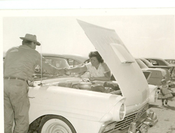 He raced a supercharged black '57 sedan, then changed to the white '57 Ranchero, also supercharged. The Ranchero supposedly had a tailgate full of concrete and a gas tank with separate fuel compartments. He later raced a Falcon Ranchero. He did some racing with the Lincolns series engines too. The FE forum has links related to him as well.