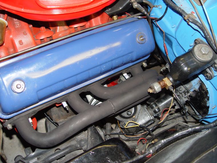 Just finishing up headers for my 57 Custom. I cannibalized a set of sbc headers for the collectors and bought y-block flanges and a few U-bends. They fit great with lots of spark plug access/header bolt access. Only the brake light switch has to be removed for installation.Hope the photos show up.