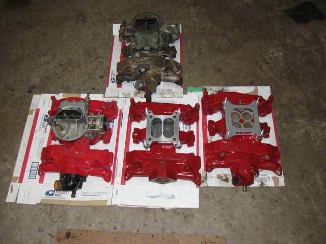 2x4 intakes,i have looked at severa and noticed erosion at the water outlet where man bolts to the head,as well as them housings. found 1 on ebay eventualley it is very good at a good price. i was told the fron flance break when use with incorrect valley cover. cliff in surrey bc 57ranchero