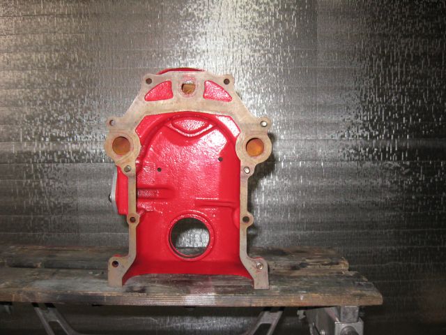 The previous owner of my 292 had a number of components powder coated, ie. valve covers, intake manifold and the timing cover. In the accompanying photos you can see that the TC was coated both inside and out. I am wondering if this was a good idea. My limited experience with powder coating tells me that if it ever starts to come off it will be in pieces (perhaps even large ones) rather than wearing away or dissolving. Chunks of powder in the cooling passages or in the oil pan would not be good. So how to remove it? I have already done the valve covers and that was very difficult. I eventually used a sand blaster which was very slow, (about 1 hour which is expensive - $60.00 per hour) and tedious. It also got me into trouble at the U-Blaster when I filled his unit with sheets of powder coating. I can only imagine that removing powder coating from a cast object would be even more difficult, perhaps exceeding the value of the cover. Your advice is appreciated.