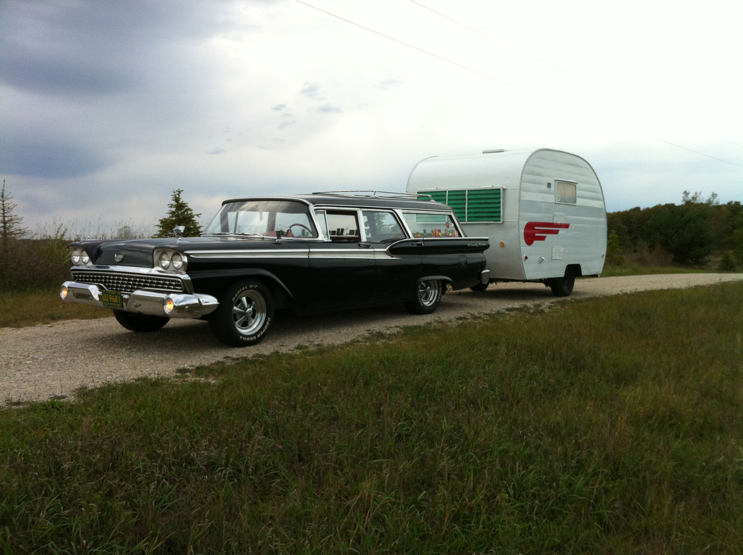 I have a 1959 Ford Wagon that i have owned for about a year and a half. It belonged to a late friend of mine and sat for about 7 years before I got it only getting about 100 miles a year. I drove it from point a to point b last summer. The 292 seems to have no major issues and the 2 speed shifts fine. I also have a 1954 Aljoa (small) camper to match. I have towed it less than a mile with a bumper hitch that was already on the car. My friend who owned the car and camper never got to take the two together on a voyage before he passed. I would like to do this. I understand the issues of putting strain on car made in 1959, and plan to put in an after market trans and oil cooler. I am worried about the temp of the motor, and have been toying around the idea of a larger fan. I drove the car last summer and it only got hot in traffic, and on a 150 mile trip when it was over 65 mphs. I am mechanical, but not a mechanic.